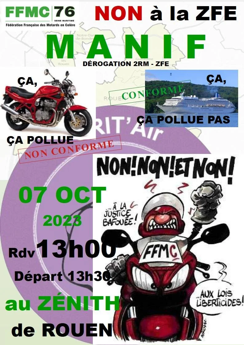 Manifestation FFMC76 le 7 Octobre à Rouen contre la ZFE